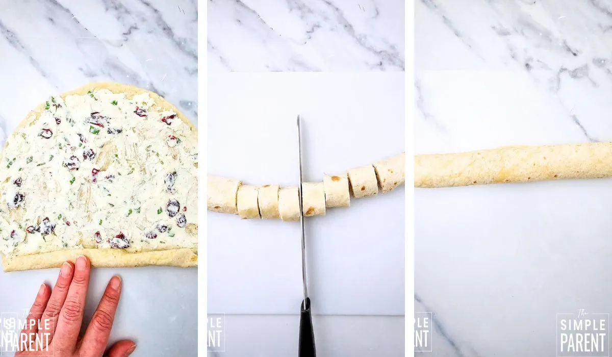 - Spread to the edges โ Getting the filling all the way to the edges helps the pinwheels hold together when you slice them