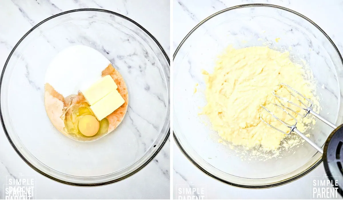 Step 2. In a large bowl, beat the sugar, butter, egg, vanilla, and milk until creamy.