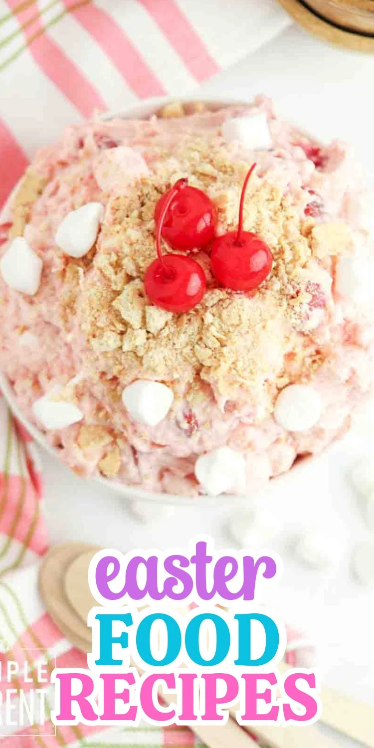 Cherry Fluff is creamy, sweet, and so pretty on an Easter table with that gorgeous pink color. It takes just a few minutes to stir together and is even better made the night before.