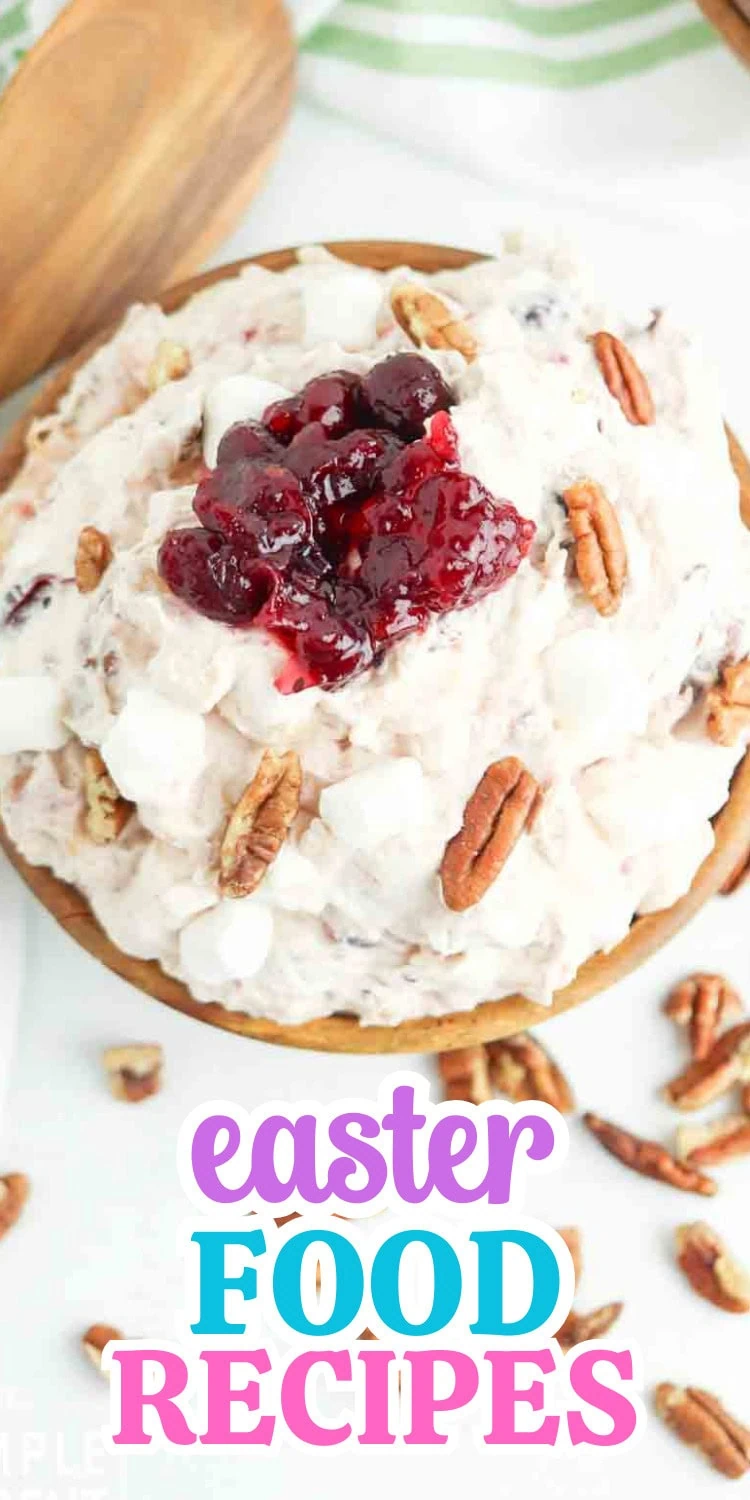 Cranberry Fluff Salad adds a pretty pop of pink to your Easter table and is one of the easiest things you can make for a holiday spread. Stir it together the night before and itโs one less thing to think about on Easter morning.