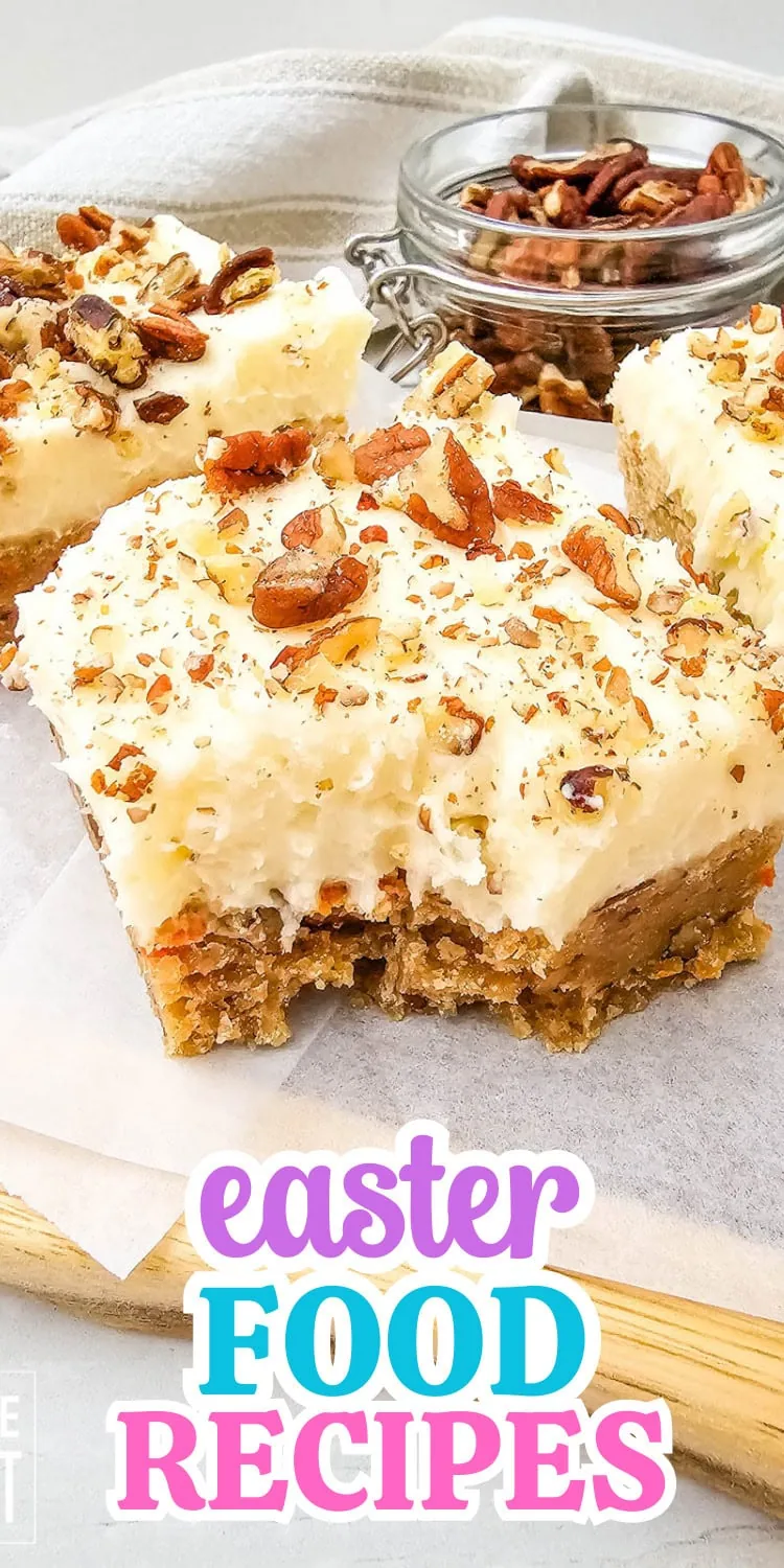 Carrot Cake Blondies are the perfect Easter dessert for anyone who loves carrot cake but doesnโt want to deal with layers and frosting. Dense, chewy, and full of warm spice flavor โ make them ahead and slice them up for an easy dessert.
