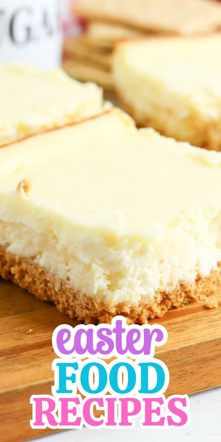 Cheesecake Bars are a simple, crowd-friendly dessert that slices up easily for a big Easter gathering. Make them the day before, refrigerate overnight, and slice them into bars when youโre ready to serve. So much easier than making a whole cheesecake.