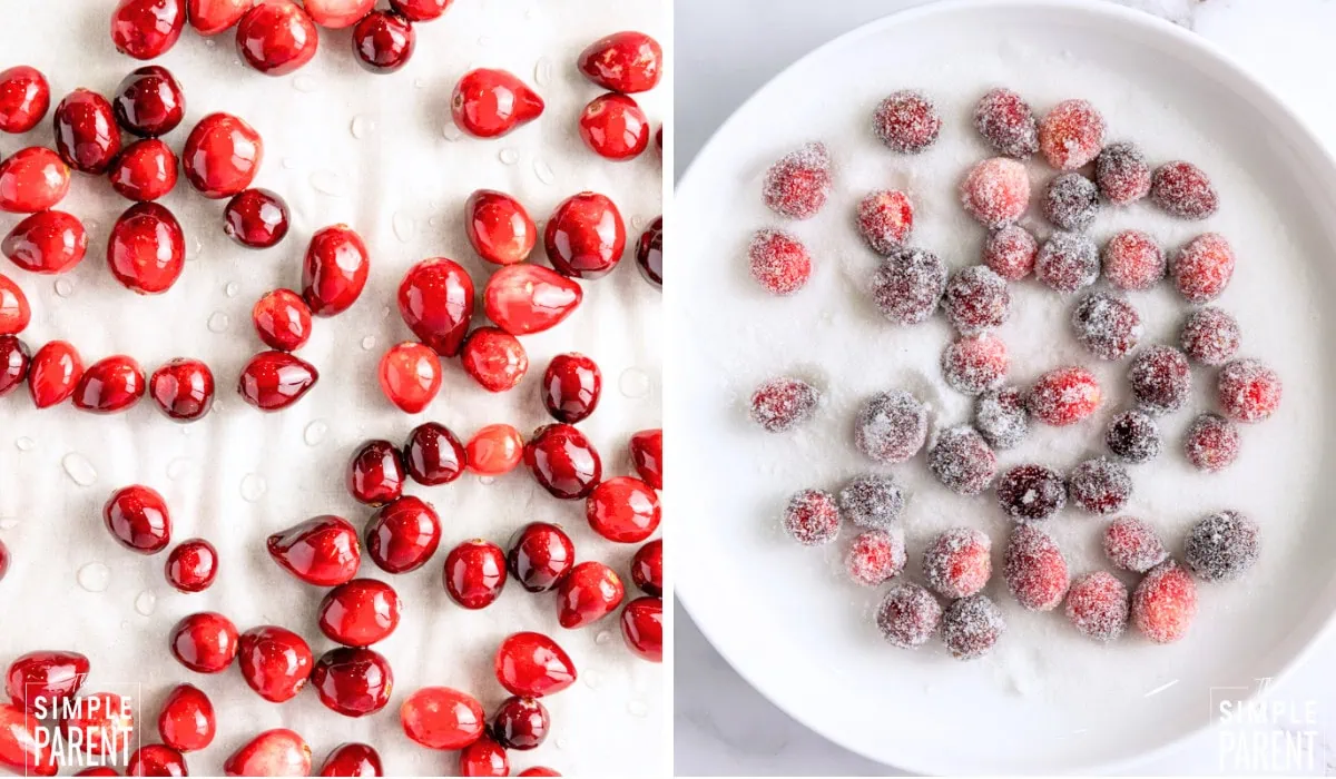 - Work in small batches when rolling in sugar so you can coat each cranberry evenly.